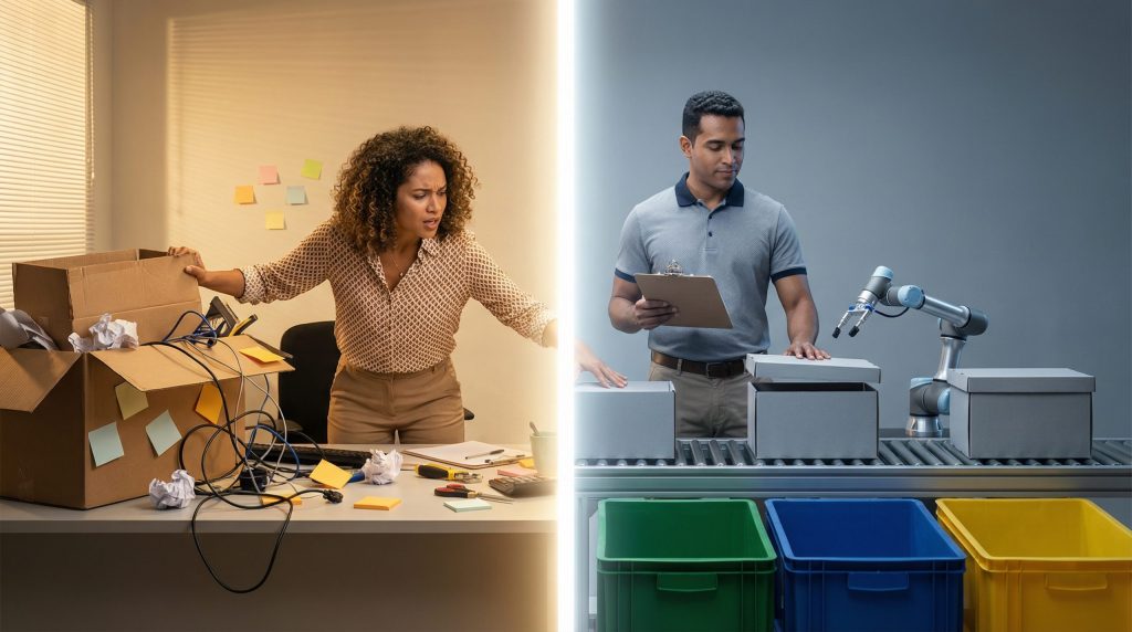 A eficiência logística também passa pela organização física do espaço. Utilize metodologias como o PEPS (Primeiro que Entra, Primeiro que Sai) para produtos perecíveis, evitando perdas por validade. Um estoque organizado reduz o tempo de separação (picking) e embalagem (packing), acelerando o despacho.
