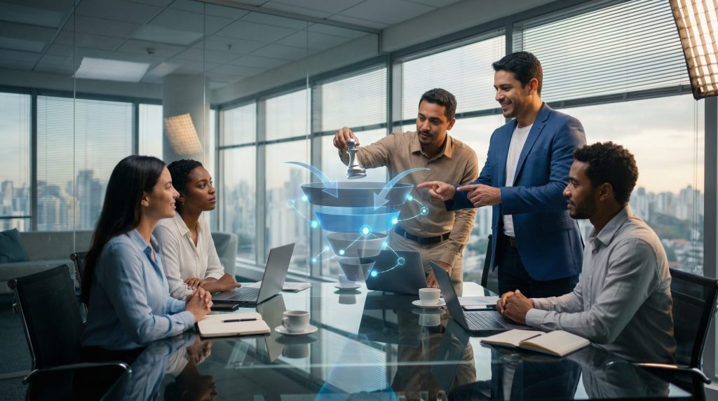 A base de qualquer operação comercial de sucesso é a clareza sobre a jornada do cliente. O funil de vendas não é apenas um conceito teórico, mas uma ferramenta visual que permite ao vendedor entender em qual estágio cada oportunidade se encontra. Sem essa organização, perde-se tempo com leads frios e deixa-se de dar atenção aos clientes prontos para a compra. A organização do pipeline permite prever faturamentos futuros e ajustar rotas antes que o mês termine.
