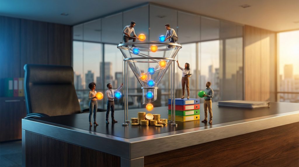 O coração de qualquer operação comercial saudável é um funil de vendas bem desenhado. Ele não serve apenas para visualizar em que etapa cada cliente potencial se encontra, mas para diagnosticar gargalos no processo de conversão. Um pipeline desorganizado gera ansiedade na equipe e falta de previsibilidade na receita, o que pode ser fatal para o planejamento estratégico da empresa.